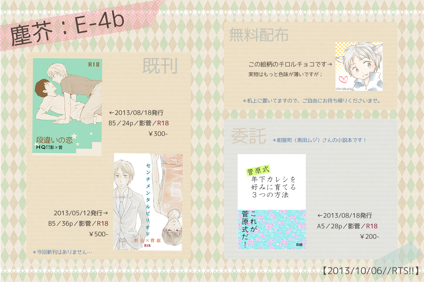 また、頒布物は無料配布を除いてすべてR18指定となっております。